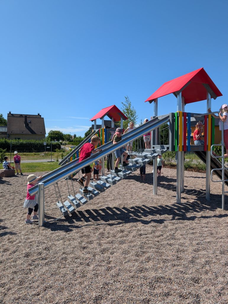 Konkret ist geplant, einen Multifunktionsturm mit Rutsche, Wackelstegbrücke, Rampe mit Hangeltau, Kletterstange und Treppe auf der 525m2 großen freien Fläche zu errichten. Hier soll bei den Kindern die motorische Förderung im Vordergrund stehen. Dieses Angebot soll mit einer Stahlschaukel mit zwei Schaukelsitzen ergänzt werden, die mit einem Gummisitz für größere Kinder und einem Kleinkindersitz ausgestattet sein wird. Das Schaukeln und Klettern regt die körperliche Entwicklung im muskulären Bereich an und schult ebenso den Gleichgewichtssinn. Die Spielgeräte nutzen der kindlichen Entwicklung und bieten spielerisch eine Grundlage für ein gesundes Heranwachsen.